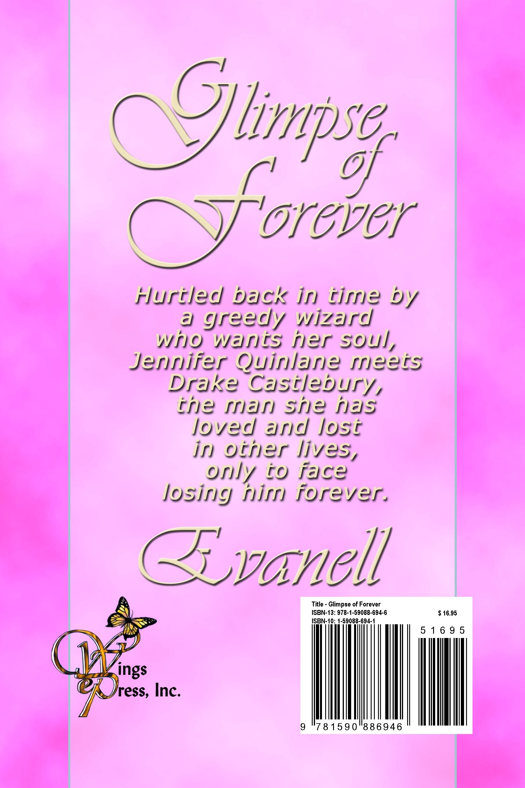 Glimpse of Forever by Peggy Evanell is a story of true love that spans many lifetimes. You’ll be holding your breath each time the wizard appears, cheering for the heroine and hero, and sharing in their laughter and tears. A sequel to Glimpse of Eternity, this truly is a story of love everlasting—and hope eternal.