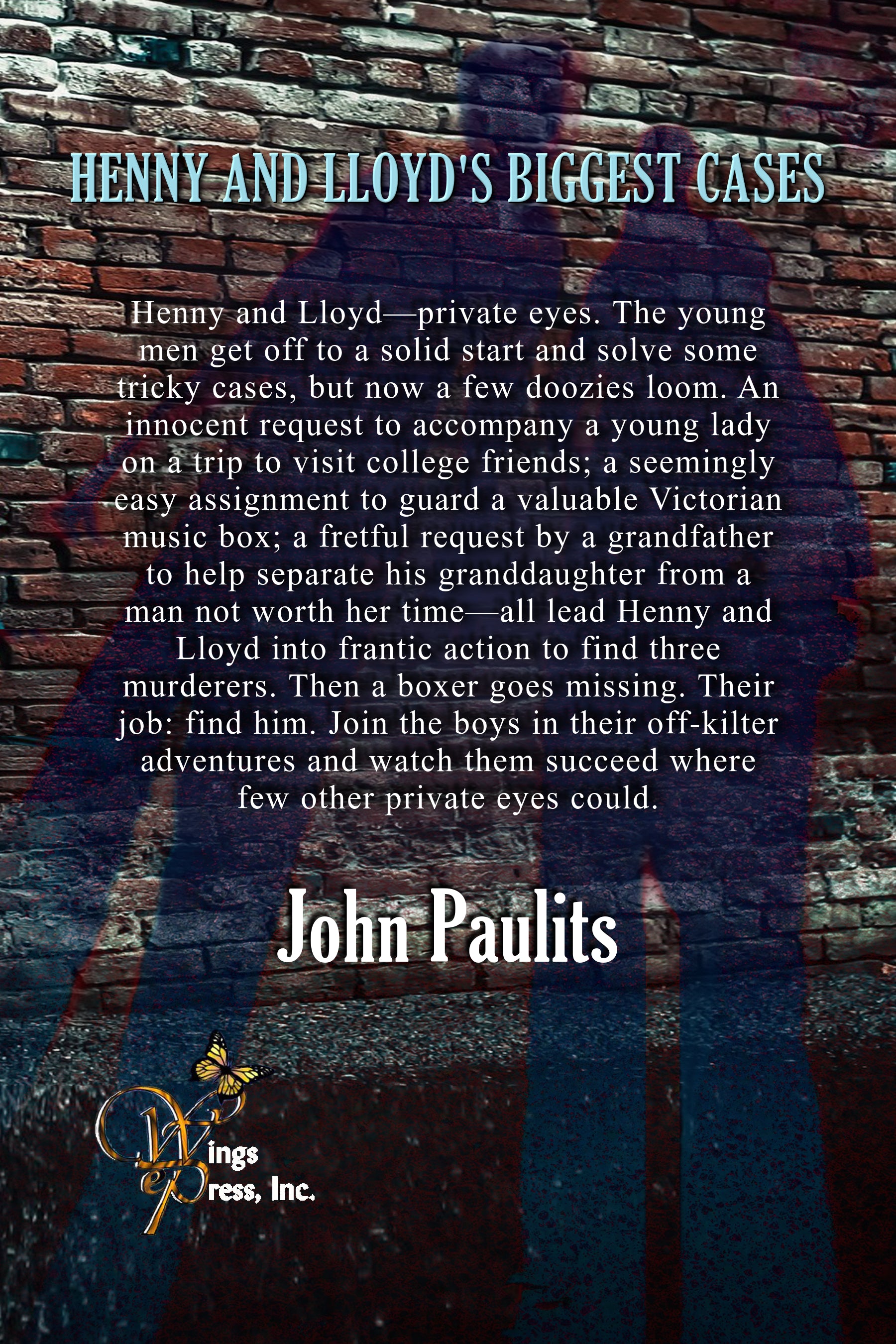 Henny and Lloyd have settled into their dream jobs. Private eyes. Their careers have gotten off to a solid start, and they solved some tricky mysteries, but now some doozies come their way. An innocent request to accompany a young lady on a trip to visit college friends turns into a suspenseful hunt for a murderer. A seemingly easy assignment to guard a valuable Victorian Charles Dickens-themed music box turns into a frantic hunt to find a murderer. A fretful request by a grandfather to help separate his granddaughter from a man not worth her time leads Henny and Lloyd into an intricate web of family tension and murder. A boxer goes missing on the eve of his challenge for the middleweight championship of the world, and Henny and Lloyd are hired to find him and get him to Madison Square Garden. Or else. Follow the adventures of two crack detectives, with a side dish of crime noir. Join the boys in their exciting, off-kilter adventures and watch them succeed where few others in their line of work could ever hope to.