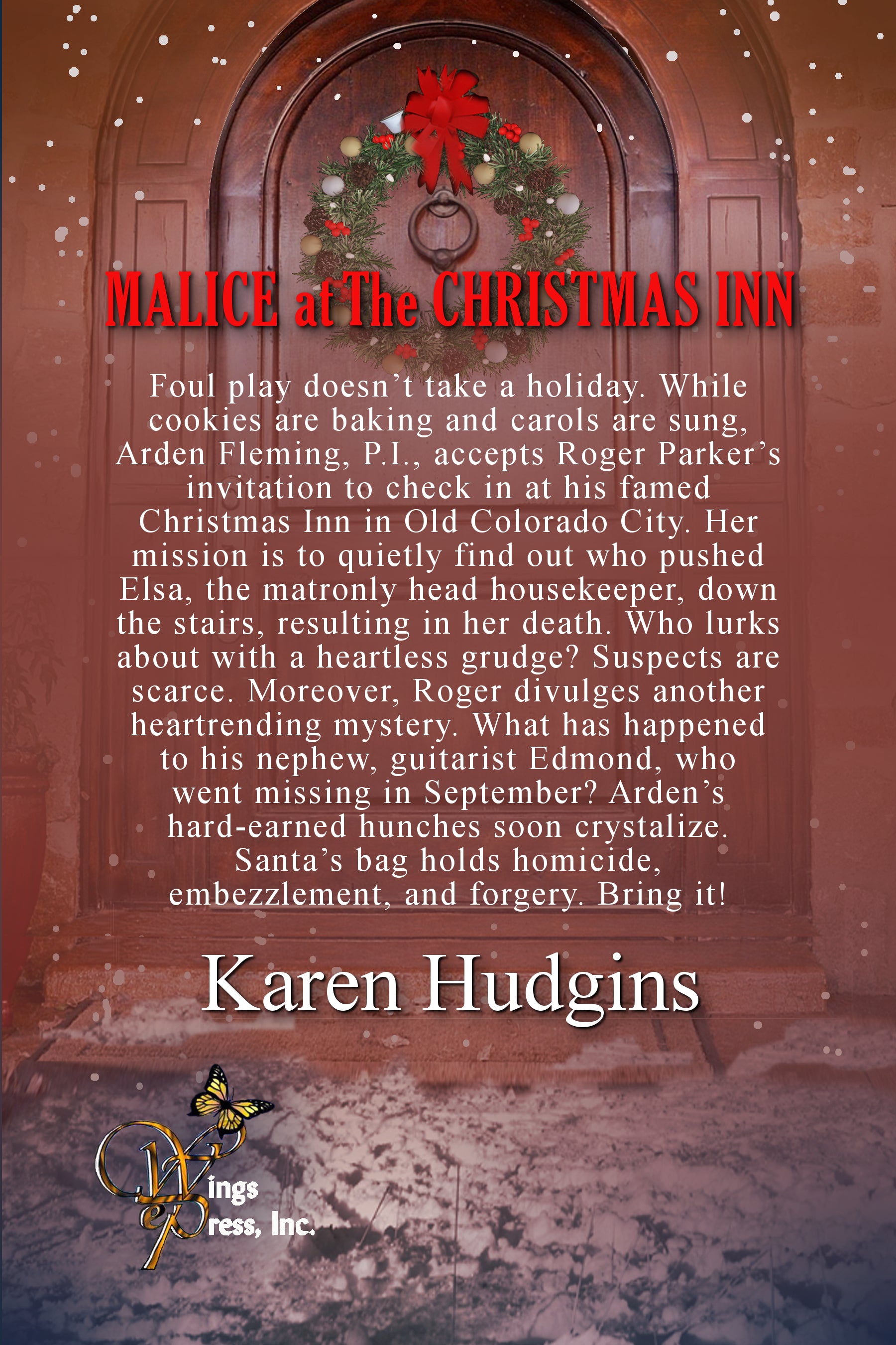 Foul play doesn’t take a holiday. While cookies are baking and carols are sung, Arden Fleming, P.I., accepts Roger Parker’s invitation to check in at his famed Christmas Inn in Old Colorado City. Her mission is to quietly find out who pushed Elsa, the matronly head housekeeper, down the stairs, soon resulting in her death. Despite the commotion, questions rise quickly in Arden’s mind. Who had the means, the motive, and the opportunity? Someone had them all. So, who lurks about with a heartless grudge? A guest or a staffer? Had Elsa discovered something nefarious? Perhaps she’d interfered with someone’s plans? Or had a former lover sought revenge?