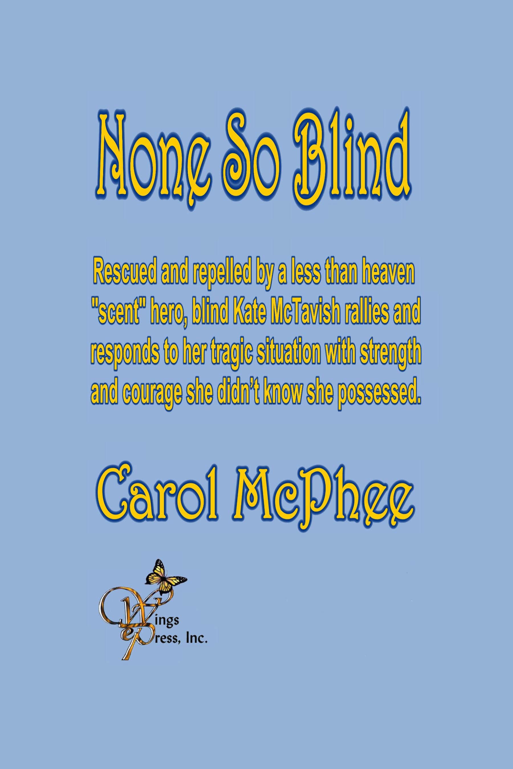 Carol McPhee has written a spell-binding novel in which both Kate and Dayton face one painful situation after another, as they grow to love one another. They must both mature, and learn to accept what they can’t change. None So Blind is a beautiful love story where both the hero and heroine learn that love and trust can indeed be the cornerstone of a lasting relationship. This is one of those hard-to-put-aside novels where you must read the next page to find out what’s going to happen next.